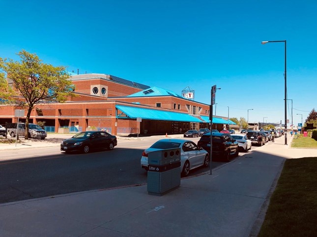 The Scarborough Town Centre YMCA is instantly recognizable from its vibrant teal roof. The centre opened in 1991 and has been a key amenity ever since. It provides swimming classes for children, a well-used gym, and an employment service office for young people. Given its affordable programming, it is heavily used by newcomers to Canada.