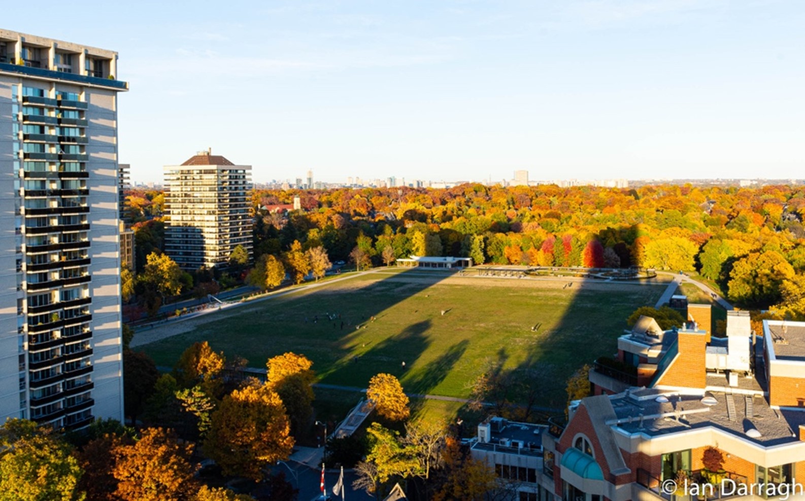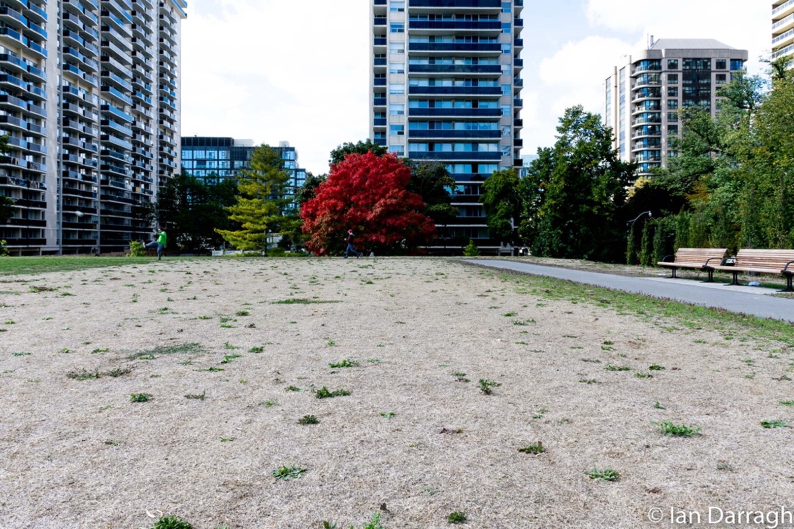 David A. Balfour Park is surrounded on the west and north sides by high-rise condos and apartment buildings. The park is an oasis of green amid a growing forest of condo towers – more than 15 more condos are in the planning stages in midtown Toronto. This will put even more pressure on David A. Balfour Park since many condos seem to have as many canine residents as humans, and these dogs need somewhere to run and do their business.
