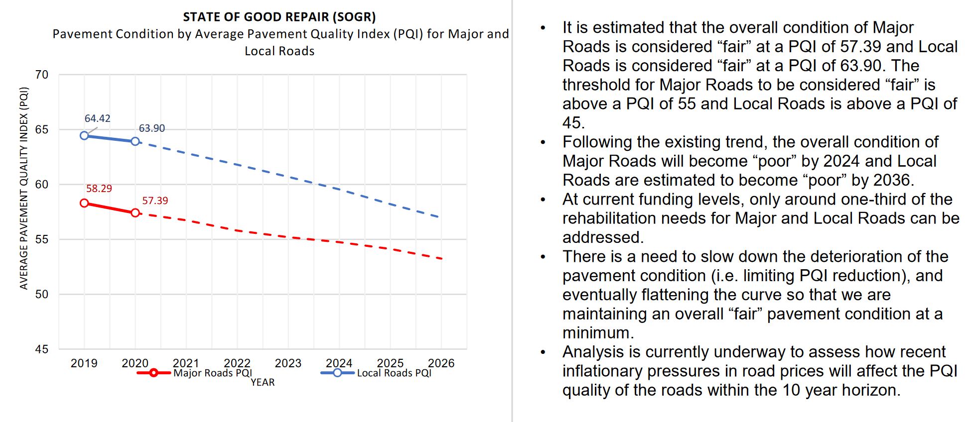 And it’s only going to get worse. Toronto’s latest budget specifically under-funds road maintenance needs, with the result that major roads will on average be in “poor” condition by 2024, with local roads following behind a few years later.