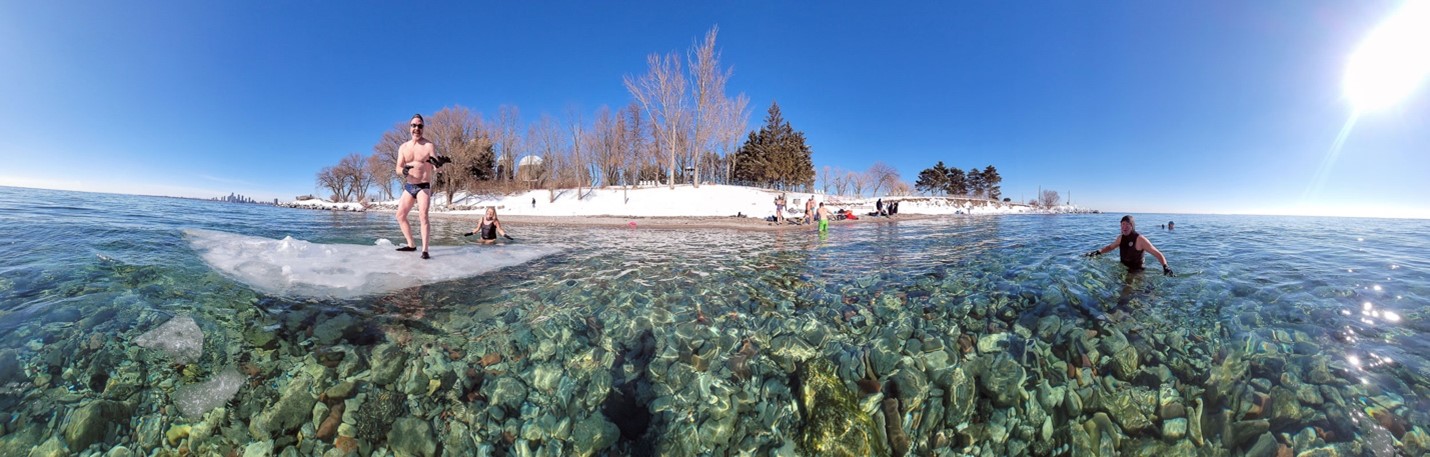 Several swimmers urged me to jump into Lake Ontario, saying it was as exhilarating as a hit of cocaine. Growing up in Montreal, I had to admit I was a Lake Ontario virgin. In fact, I had never swum before in any Great Lake. I decided to take the plunge. I waded into the lake, and then launched myself backwards into the waves. Prof. Mann swam out with me and took photographs with a camera attached to his eyeglasses to record my baptism. The water was not as cold as I expected. With the waves, it felt like I was swimming in the ocean. Back on the beach, my whole body tingled as the sun warmed me up. I felt a sense of joy and accomplishment as a I toweled off. I felt I had joined the Michael Hough Beach Club. Free admission!