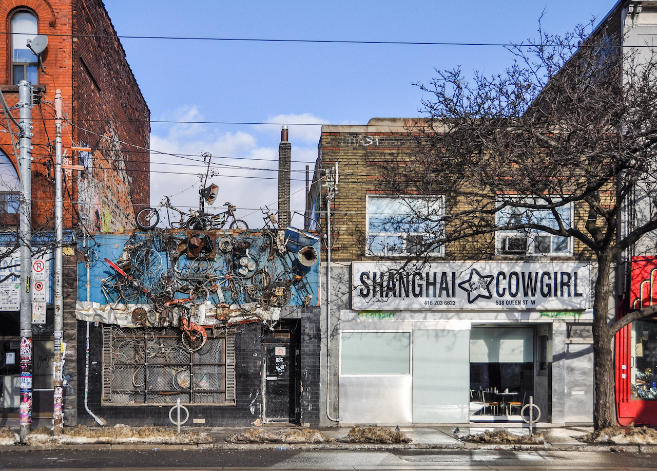 Steele enrolled at the Ontario College of Art (as it was then known) in the early 1980s, and then founded one of Toronto’s first desktop graphics studios, called Mackerel. He started making photos of Queen West with a Nikon Coolpix in the 2000s. He loved the way digital photography gave him the ability to capture images inexpensively.  “I was a witness to massive changes all around me on Queen West. I’d go back to the same spot, and, within a few days, things had already changed.”