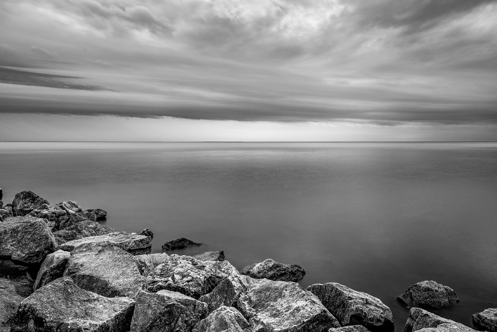 The light changes as you approach the shore of Lake Ontario: there is more of it, you can see further, the horizon is a constant presence, the reflecting water is never still. In humid or overcast conditions, this light can seem to literally fill up your eyes; when the sun is out, it can reach right into your body. The vastness of the lake and sky, and the aliveness of light and weather, is something to contend with. Some photographers end up changing contrast or adjusting the density of the sky to better suit their expressive goals; but Photoshop or no, many who try this cannot achieve any sense of realism. In these images, however, Evans seems to have lifted out the luminance from the landscape in front of him, held it briefly in his camera, and directly transposed it onto the printed page. Very few photographers can do this, but you can see this kind of attention to light in Paul Strand’s work from the Outer Hebrides, or, more recently, in Robert Adams’ images made along the Pacific coast. Hiroshi Sugimoto, although he photographed light and water in an utterly different way, is the only other photographer I can think of who has this same degree of control over the gray scale while photographing at water’s edge.