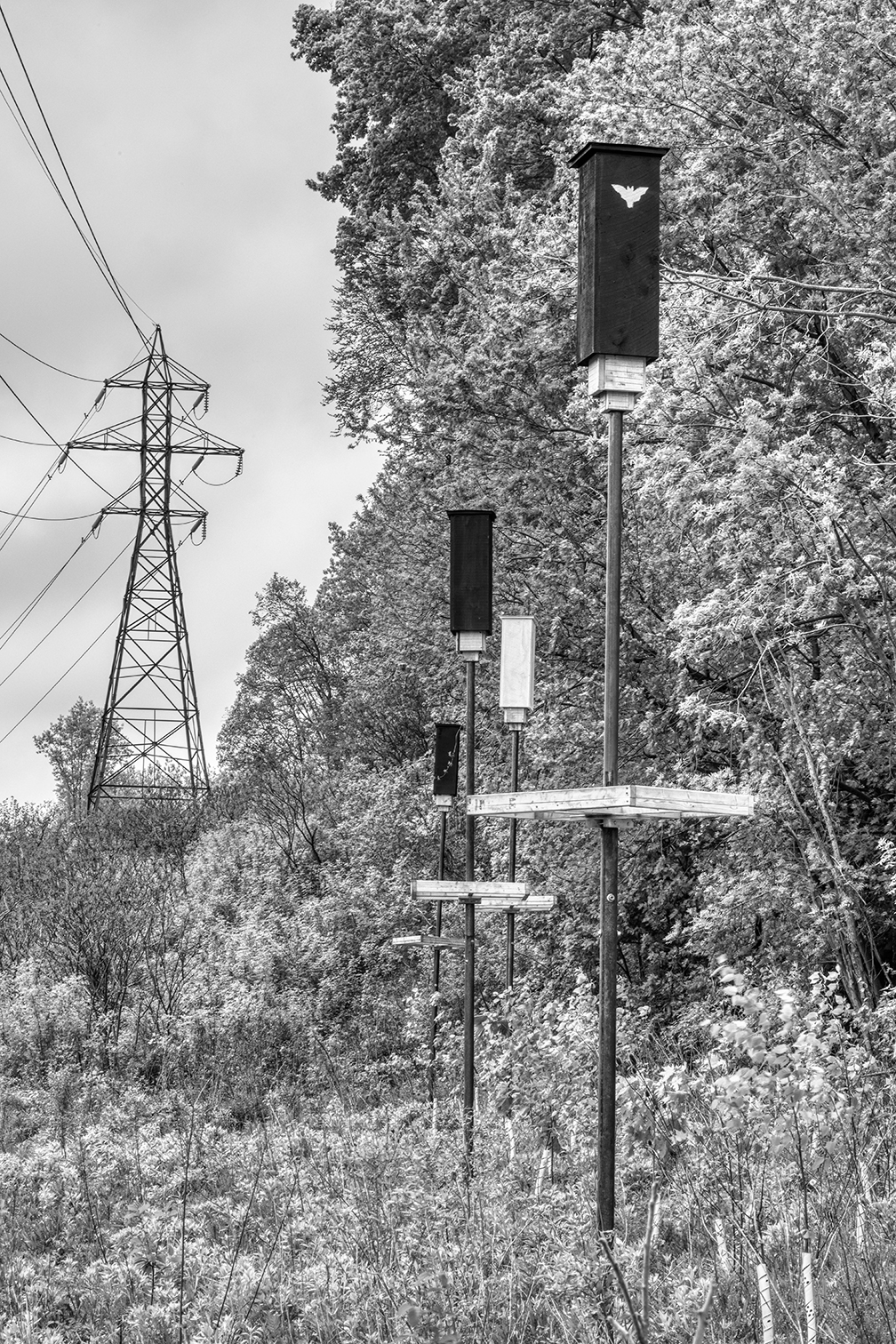 As photographer Steven Evans and I walked along the trail below the bare hillside at Crothers Woods, a red-tailed hawk circled overhead with a branch in its beak, looking for a nesting site. I hoped it would choose a tree that wasn’t going to be chain-sawed. We saw no evidence of any silt fencing or matting to prevent soil erosion. It was the same when we hiked along the West Branch of the Don River near the Ontario Science Centre. The clearcutting was right down to the riverbank. A buffer zone of shrubs and trees should have been left to stabilize the shoreline and prevent eroded soil from silting up the river. There was no silt-fencing or matting to prevent erosion there either.