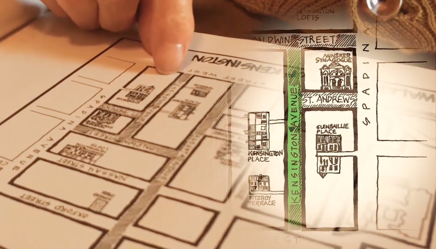 Another voice in the film is David Perlman, a community advocate and the chief publisher of the local newspaper Kensington Drums. While its last publication date was back in 2001, this newspaper had published for 13 years, featuring and keeping tabs on local stories in the market that were largely ignored or unaddressed in professional media outlets. Perlman’s family has rented the same house in Kensington for 50 years. “My adult children could never afford what it takes to buy or rent here now,” he said in an interview with Spacing Media. His story is one of many in the film that illustrate the growing divide between long-time residents and the new wave of development in the market.