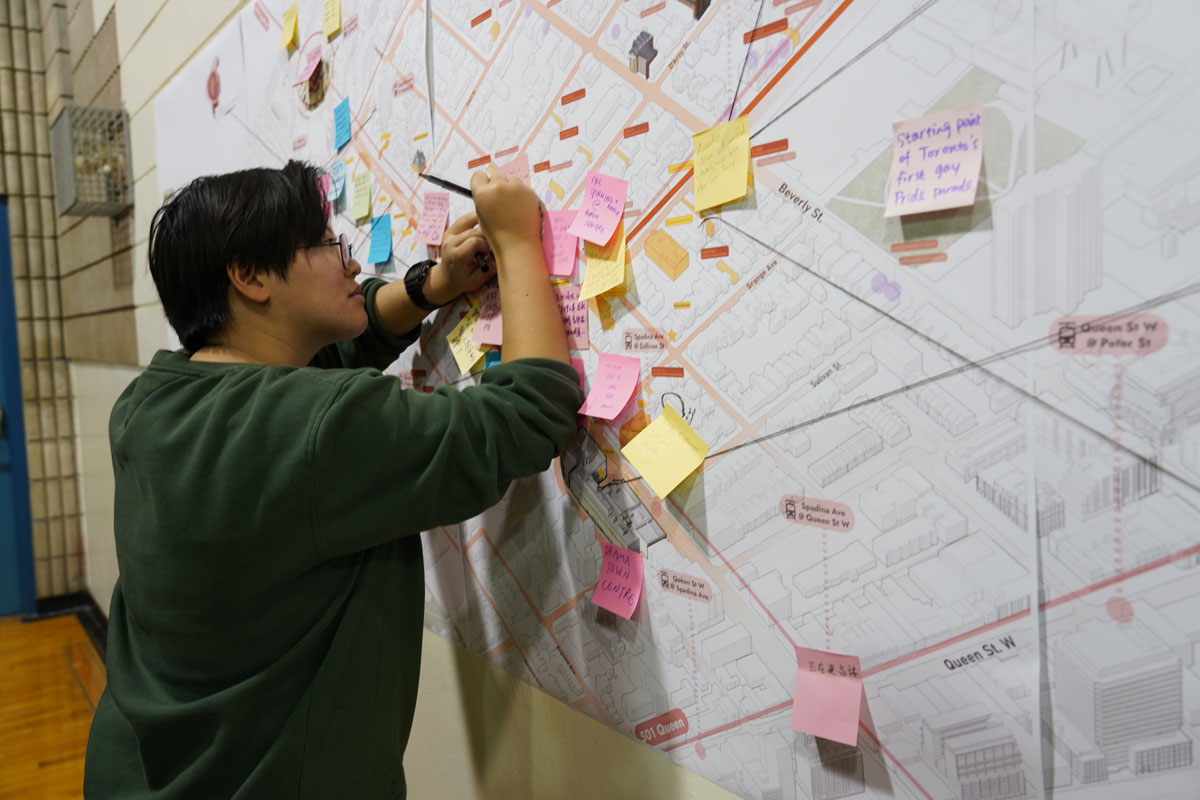 To uncover the hidden narrative and lost memories, Zhang and her students found a solution through architecture models and interactive maps. The students meticulously made detailed models of iconic historical Chinese restaurants, and then invited the public to share their stories and associated personal objects. They also made massive illustrated maps of Toronto’s past and present Chinatowns, allowing visitors to write down memories on sticky notes and add to the maps. The activities took place in 2 public events in Chinatown in the Fall of 2024.
