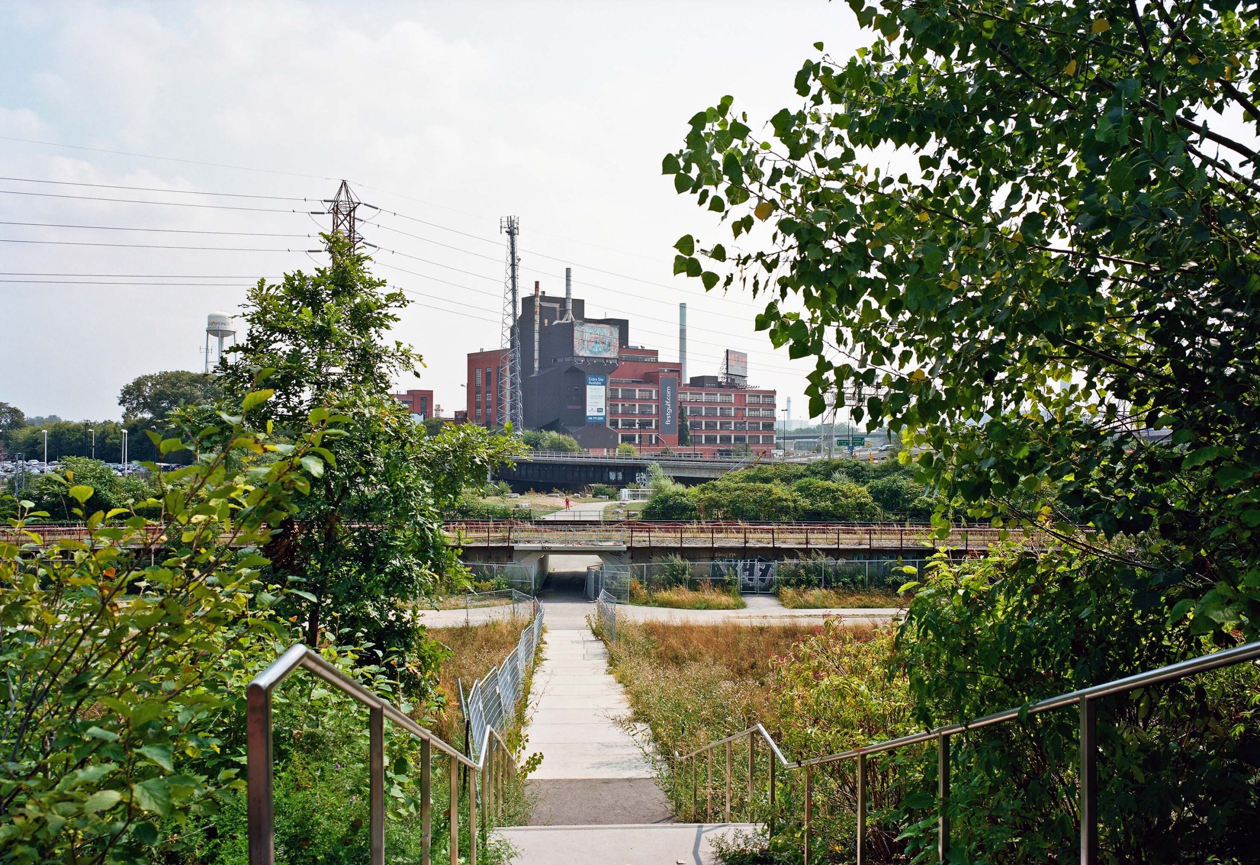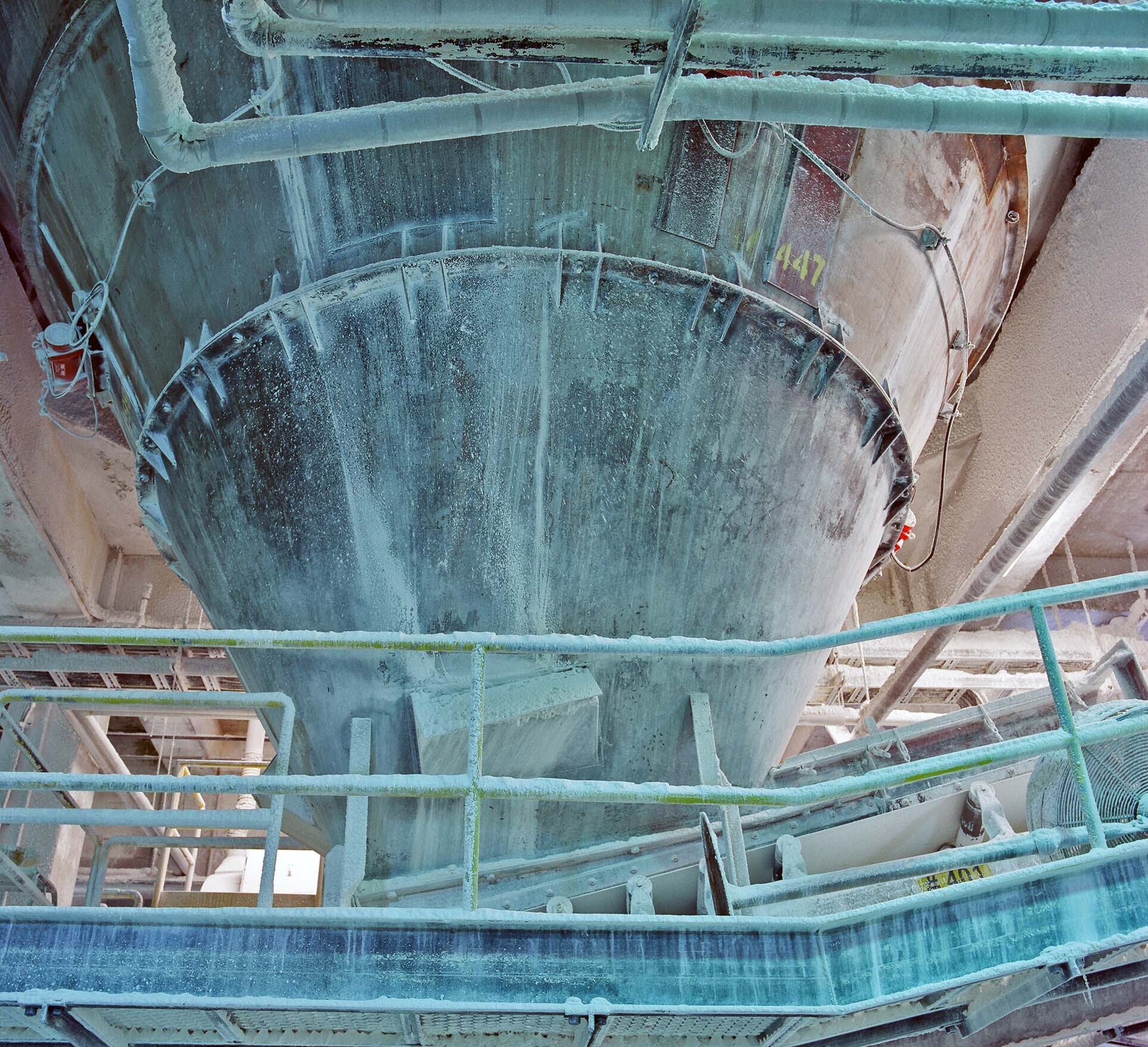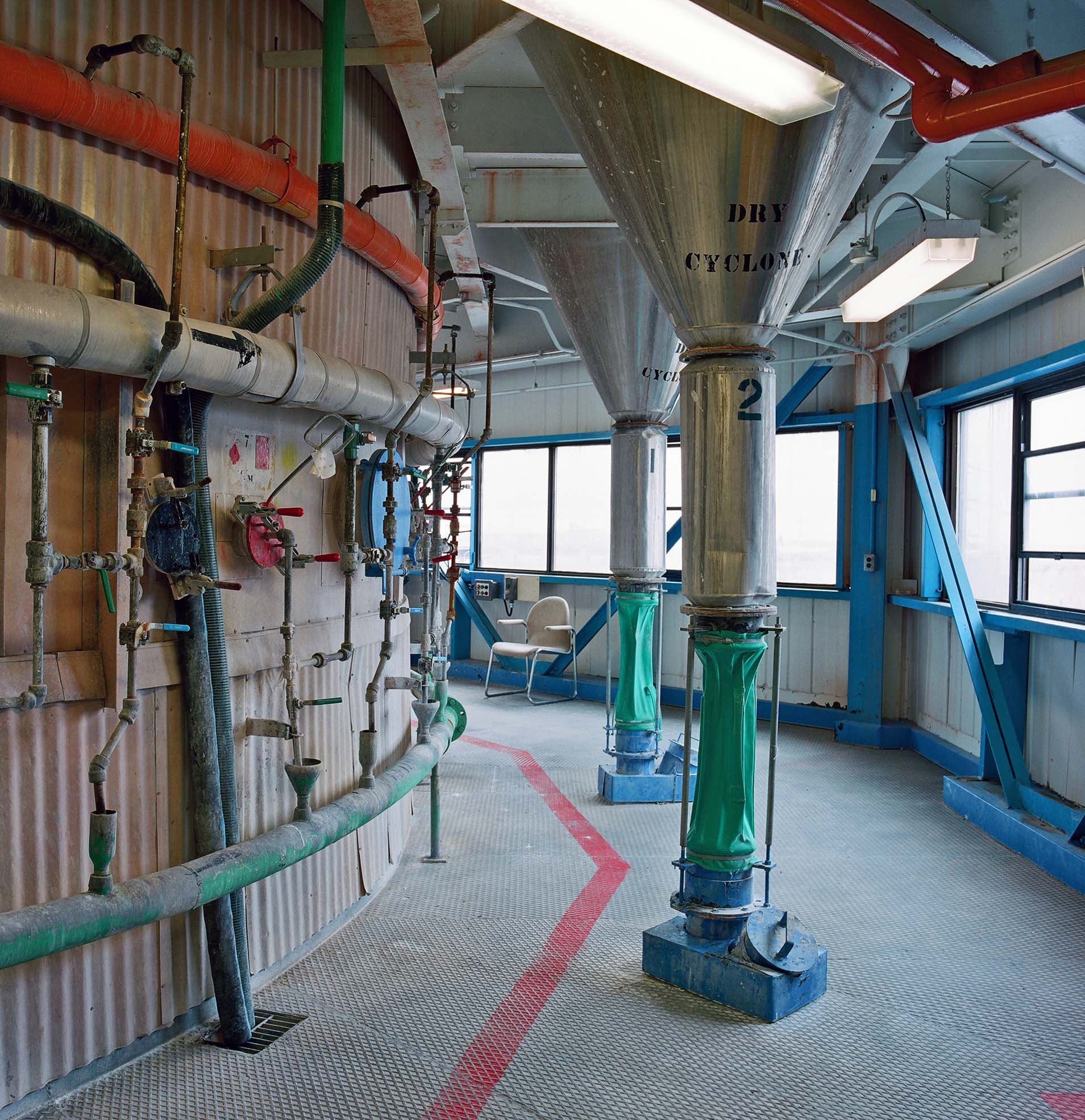 In dry detergent manufacturing, the spray-drying tower is a tall, cylindrical stove used to convert a liquid spray into detergent powder. A colossal new spray tower had been added to the Don Valley plant in 1983, adding a bold vertical element to its main facade.
