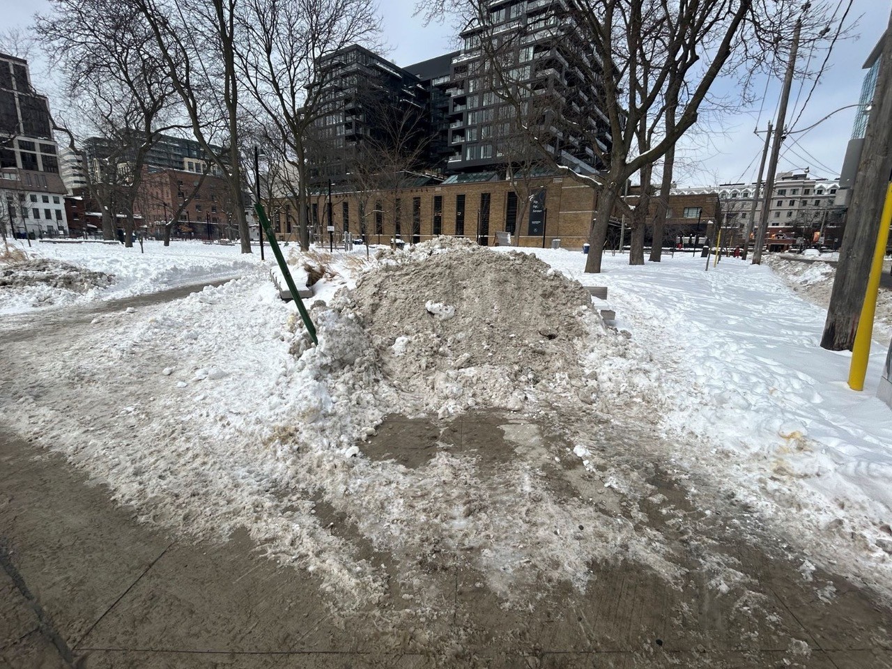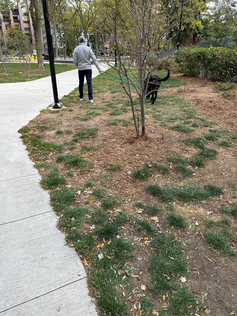 Park design standards, such as installing toe-rail guards and wood and wire snow fencing around plantings, as is done in cities across the world, should be mandatory. Additionally, measures should be taken to prevent damage from maintenance trucks, snowplows, and dogs that can decimate plants (we really need better solutions for sharing park space with dogs). In high-use areas where grassy lawns consistently fail, resilient options like pollinator meadows or permeable paving should be considered.