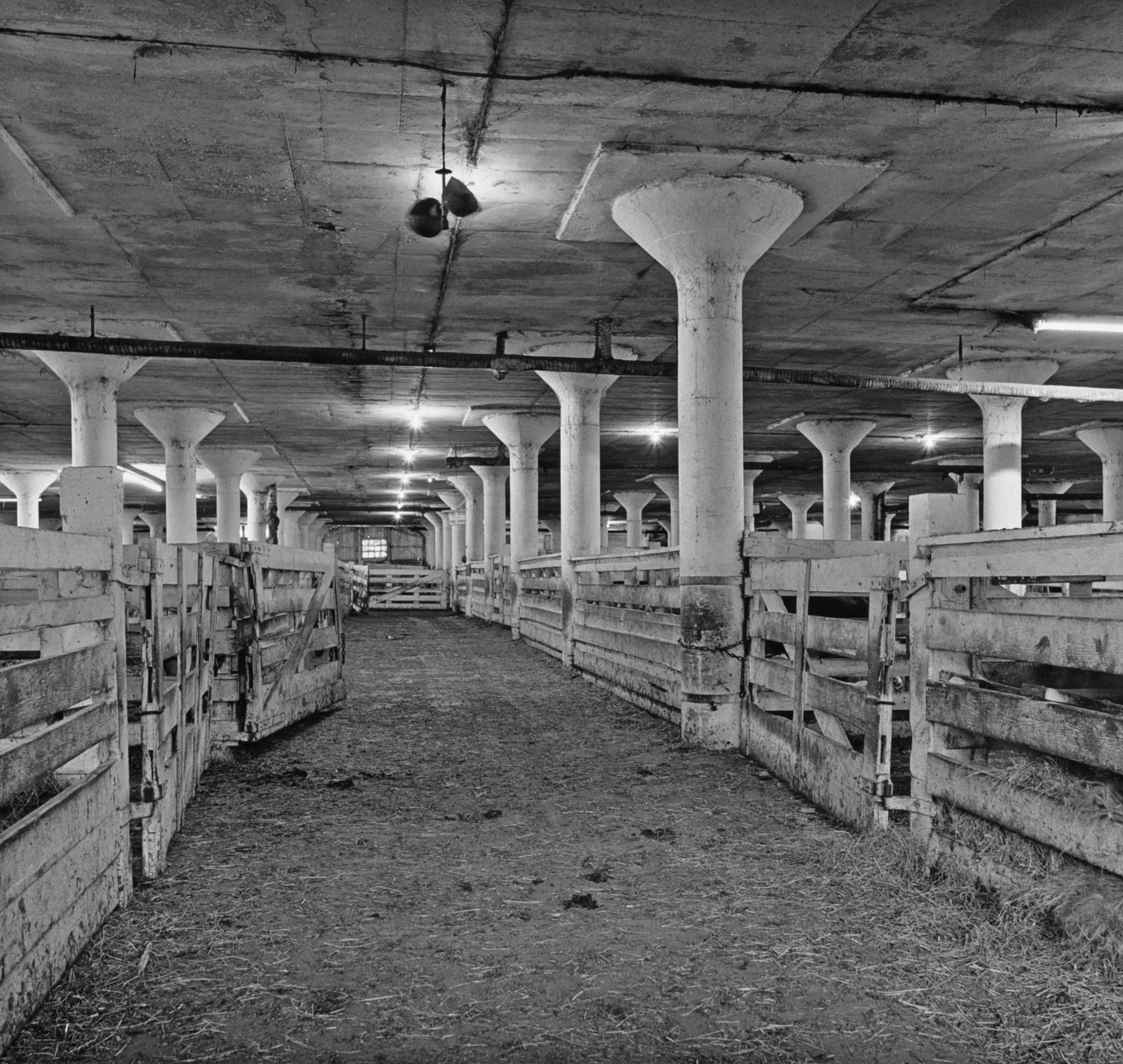Few archival photographs of the stockyards were accessible in that era before the internet revolutionized archival research. Left to my own devices, I decided to concentrate on showing the largest possible range of architectural spaces inside the complex. While photographing at Wickett and Craig, I had become inured to extremely strong odours, so I knew I wouldn’t be bothered by the barnyard smells I would encounter.