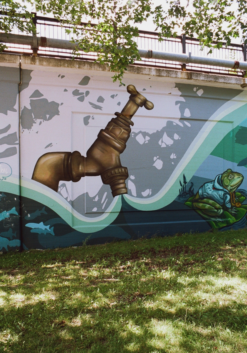 I often look for my subject matter in urban areas that are less affluent, underdeveloped, and generally ignored. In this case I wanted to show how an ageing commercial and residential streetscape could represent a wide range of social interactions, both historical and immediate. Whether that makes my work political is up to the viewer to decide.