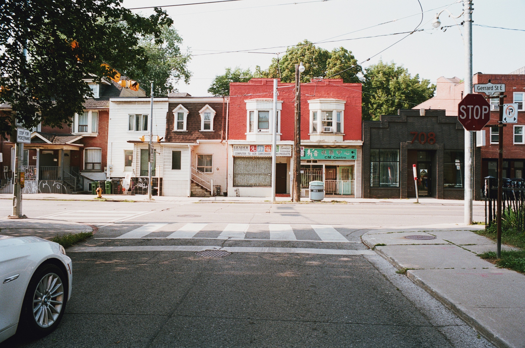 After an exploratory visit in June 2023, during which I began photographing under skies softened by wildfire smoke, I envisioned an initial project covering the three-kilometre section of Gerrard East between the dogleg intersection at Broadview Avenue and the much larger dogleg at Coxwell Avenue, where Lower Gerrard ends and Upper Gerrard begins a block north.