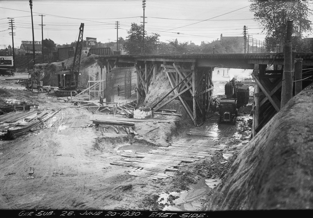 In the mid-1960s, the factory buildings were replaced by the suburban-style Riverside Shopping Centre. The shopping centre has now been demolished and the Government of Ontario is planning to replace it with a Transit Oriented Community of 1,080 housing units. A new overpass will be added to accommodate the elevated Ontario Line station, adding to the length of the pedestrian passage beneath the tracks.