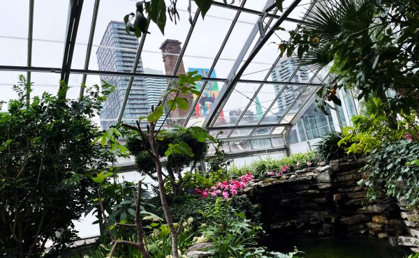 In the free conservatory at Allan Gardens park in downtown Toronto, the glass houses hold warm air, vibrant plant life, moving water, and a quiet that...