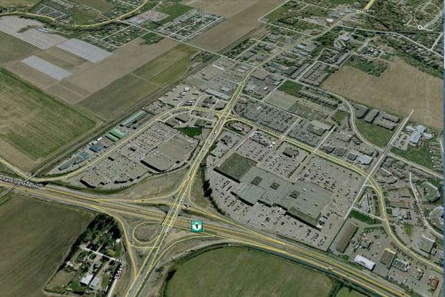 As Highway 1 is widened and its interchanges expanded, the future is already being realized at the Vedder interchange (below, click to enlarge), where nearly a square kilometre is completely paved over with surface parking lots, surrounding the one-storey boxes that occupy less than half their sites.