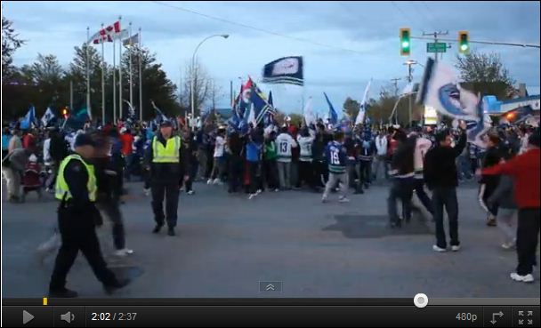 And it allows for something critically important. As you can see on the video, the crowds are assembling, flag-waving fans are running back and forth from corner to corner, cheering the honking cars, their banners waving, as the police regulate the traffic flow.