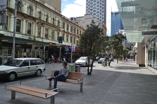 A borrowed concept based on the Copenhagen model of non-defined roadways, the response from drivers has been somewhat different than European cities which have implemented similar design concepts within their respective CBD’s. In Auckland, the absence of curbs and initial lack of signage to define parking spaces has led to a free for all by motorists claiming free parking by travelling up onto what used to be sidewalk space, finding themselves in-between street trees now surrounded by paving on random angles and in some cases, double parked.