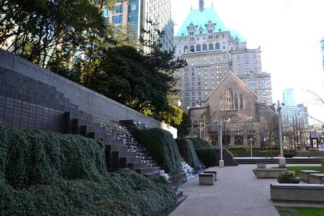 It is one of the most extravagant public spaces in Vancouver – if measured by the care and cost of its design. And yet this plaza at Park Place feels lifeless, barely used, in the heart of the city’s business district. (Map here.)