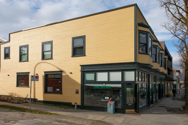 Naively thinking they could slowly start to fix up the building, they were startled to find out the city had other plans: either do it as one big project or no permits. Ripe for a new project, they pitched themselves into rehabilitating the building by removing the stucco, restoring the original siding, using archival images to restore the storefronts and replicating the original windows.* Using a Heritage Revitalization Agreement (HRA)** with the City of Vancouver, they developed the back parking lot into five new construction strata units to help finance the restoration of the heritage building.