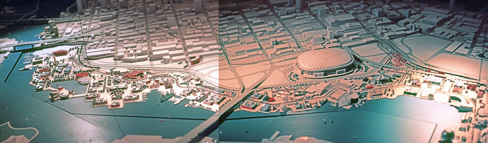 The “Green Plan” developed in response to criticism of the “Lagoons Plan” and transformed the water inlets into green after doing the water well testing; park open spaces that broke up the clusters of tower development while connecting them to one another other—and the downtown core—through a shared and accessible public amenity provided throughout the development. As seen in the image above, this plan closely resembles what was agreed upon and ultimately built.
