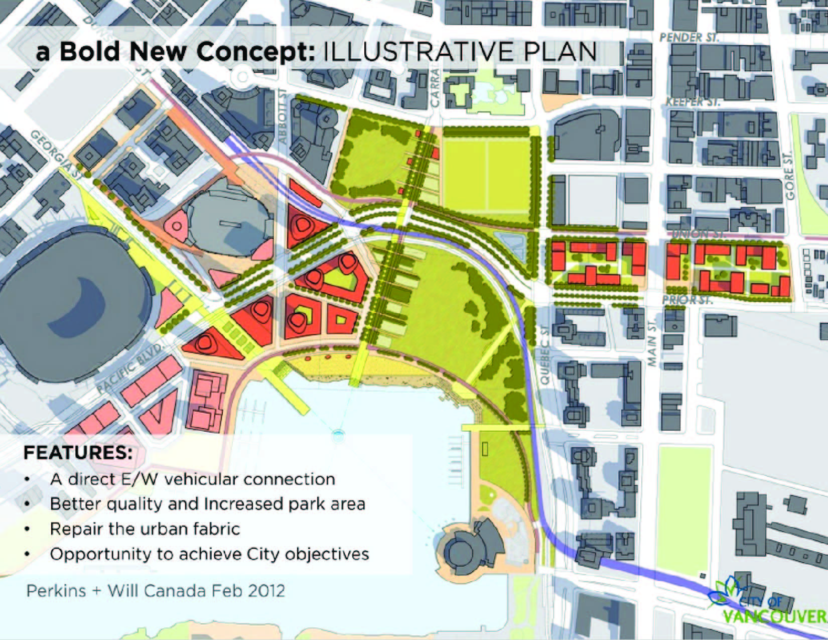 The vision entitled: “VANCOUVER VIADUCTS: a bold new concept” [Click for Slideshow] is being co-presented by the City of Vancouver Planning and Engineering Departments.