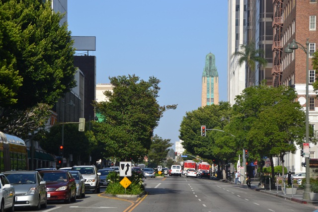 More trees – and way more traffic. No mid-block jaywalkers idling their way across Wilshire Boulevard – nor, with very few exceptions, anywhere else in Los Angeles. Like, for instance, here: