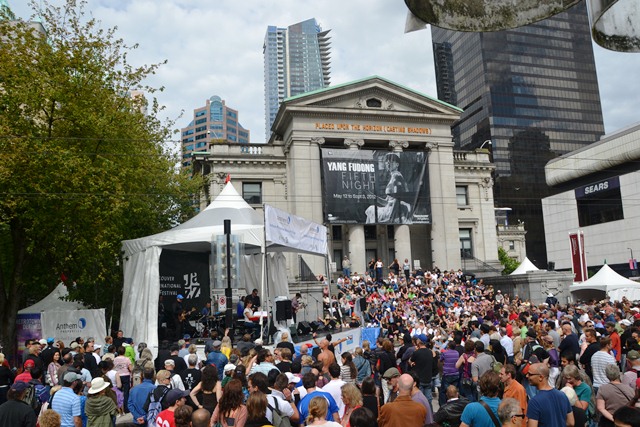 Then, five blocks away: Robson Street, closed for Jazz Festival (map here).