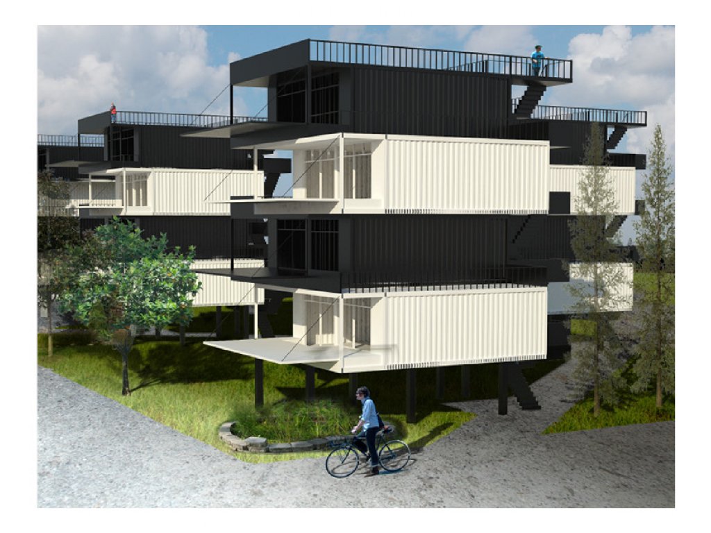 This project suggested using shipping containers as an apartment housing solution to fit into temporarily vacant sites in the city.