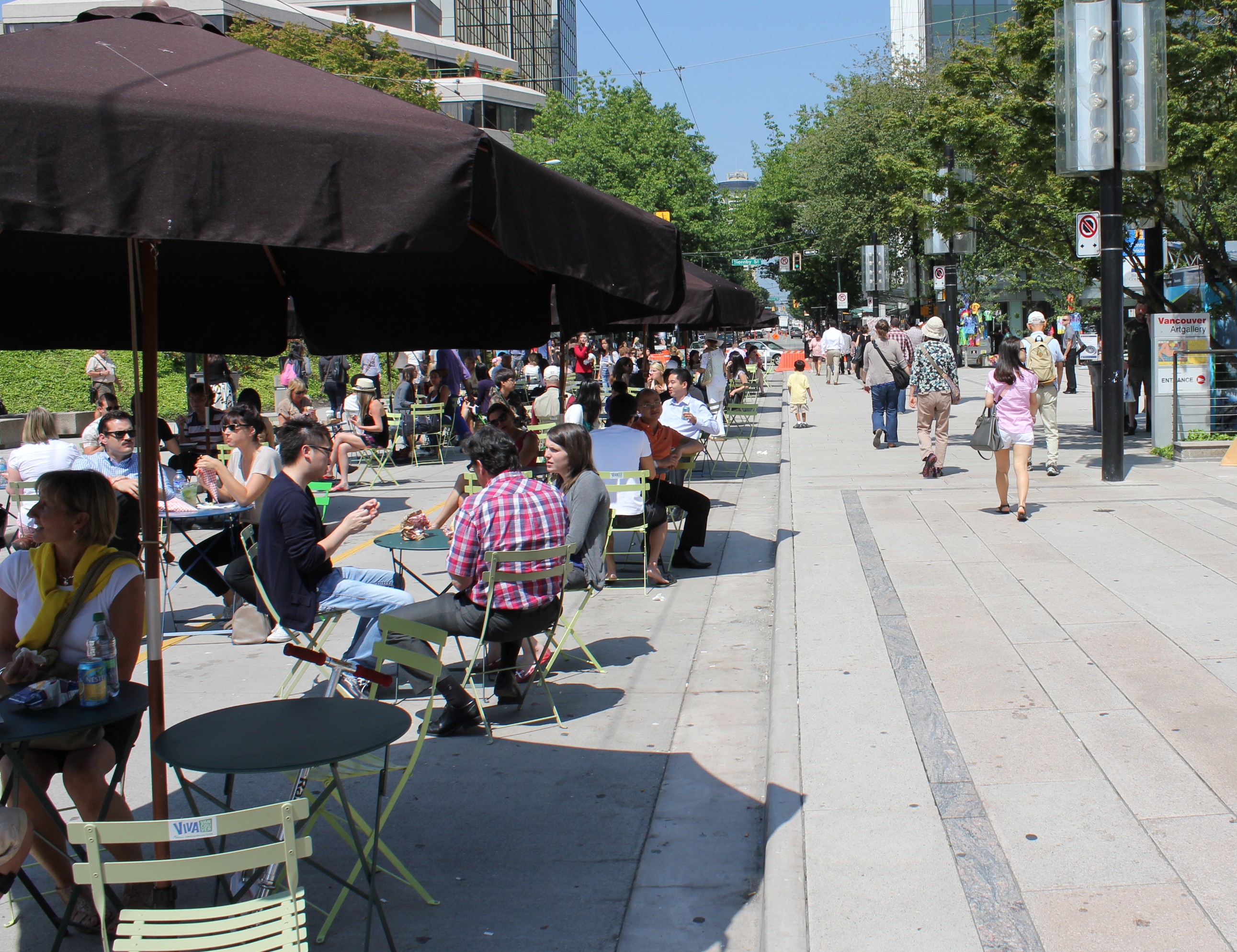 This action of blocking vehicular traffic along one of Vancouver’s most important retail streets has opened up possibilities for summer time activities that include performances and events.