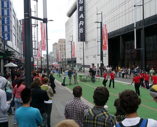 Some of the City’s first attempts at opening up a redesigned Granville Street happened during the 2010 Olympics festivities. [Image: City of Vancouver]